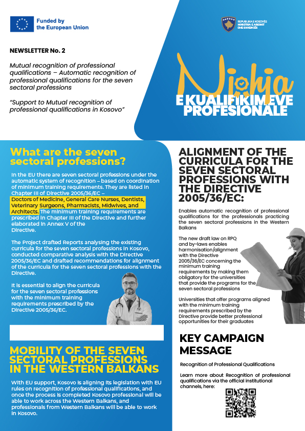 Legjislacioni i ri i Kosovës, i harmonizuar me rregullat e BE-së për njohjen e kualifikimeve profesionale, është duke u hartuar.
